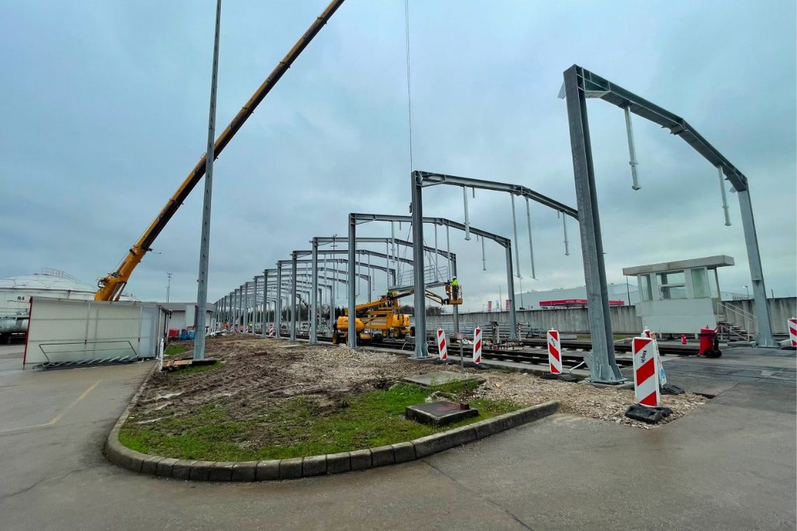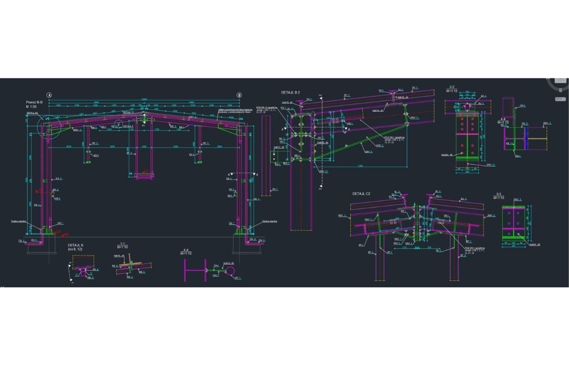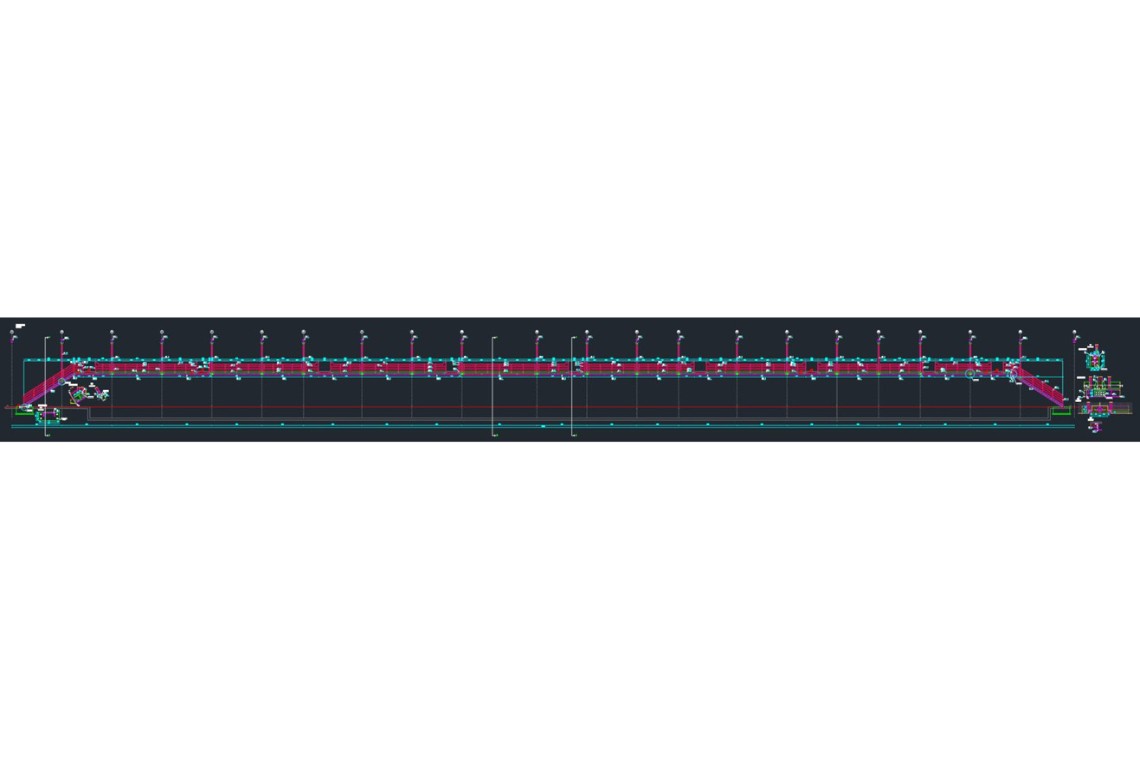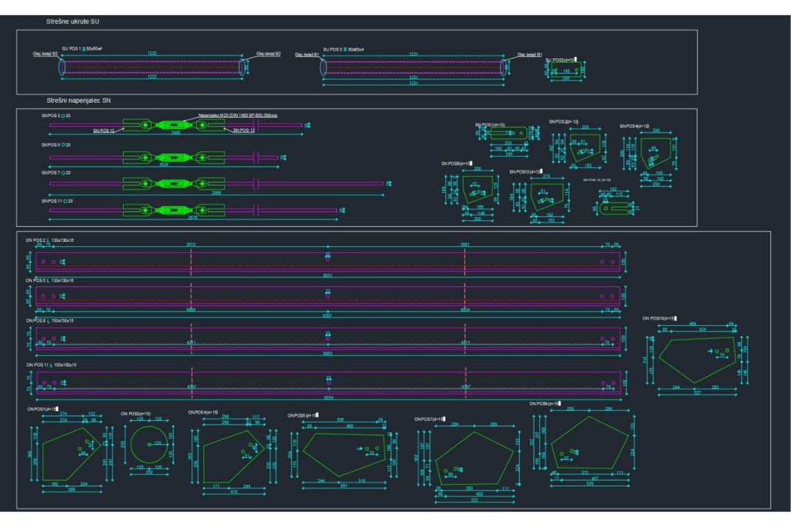 Opis: Izrada projekta izvedenog stanja željeničkog pretakališta, čelična konstrukcija tlocrtnih dimenzija 13,6×130,5m.