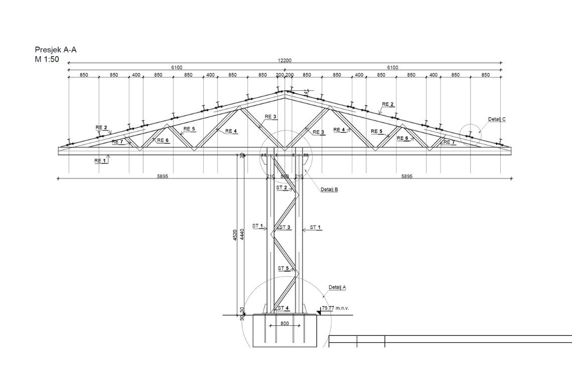 Opis: Izrada izvedbenog projekta i radioničkih nacrta nadstrešnice za postavljanje fotonaponskih ploča.